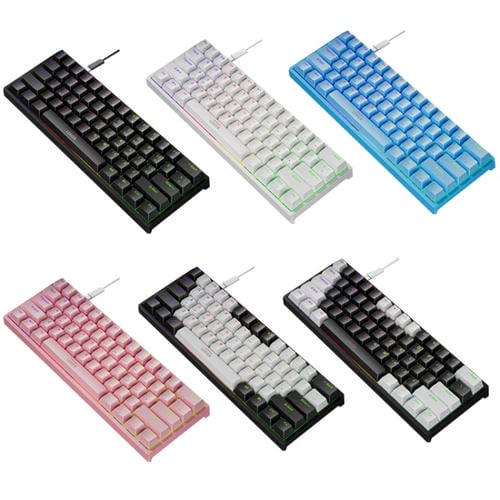 - Cable independiente Type-C de 1,8 metros, distribución de 61 teclas, 26 teclas anti-ghosting, tamaño 30 x 10,5 x 3,5 cm, peso 0,65 kg