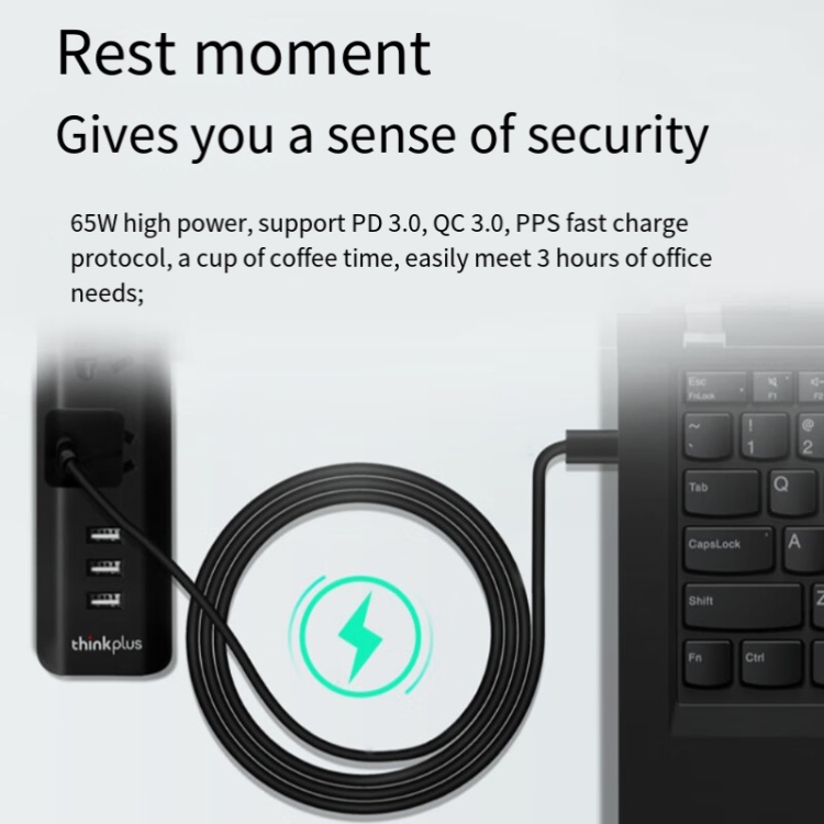 Adaptador De Corriente Lenovo Thinkplus Young Lipstick 65W Cargador Rápido Pd (Cn)