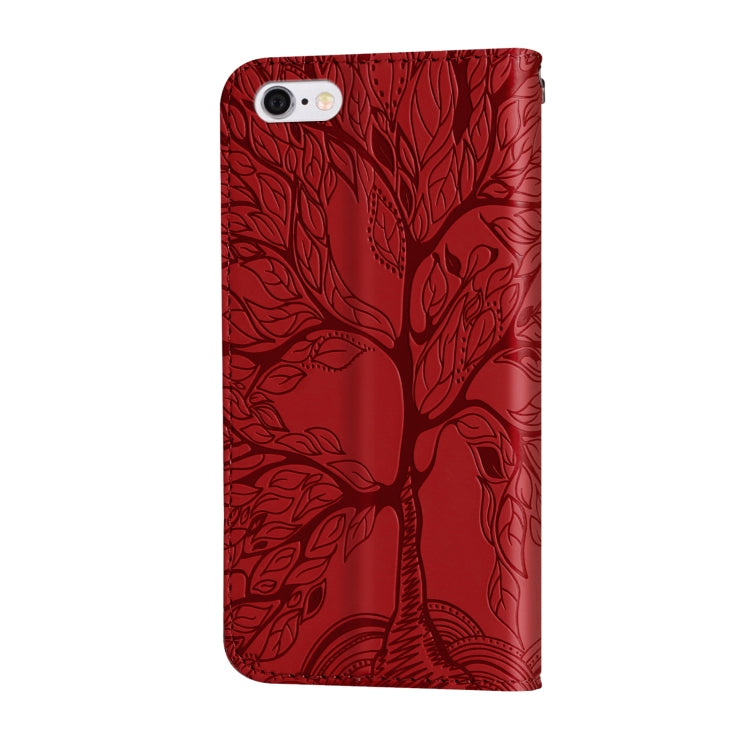 Estuche de Cuero Life Of Tree iPhone 6 Plus 6S Plus Tapa Horizontal Soporte Ranura Tarjetas Billetera Marco Fotos (Rojo)