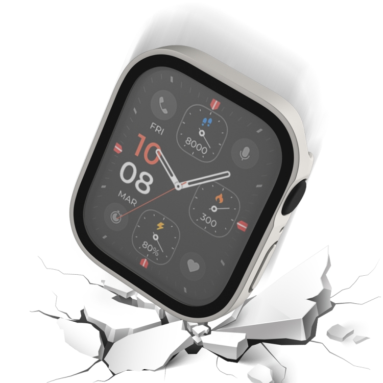Marco PC + Estuche Vidrio Templado Life Waterproof 2 En 1 para Apple Watch Series 8/7 41mm (Plata)