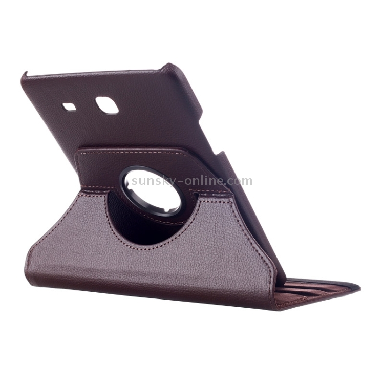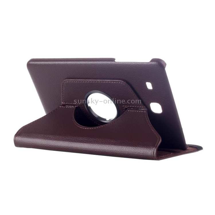 Funda de Cuero Litchi Texture Galaxy Tab E 9.6 Rotación 360 Soporte Multifuncional (Marrón)