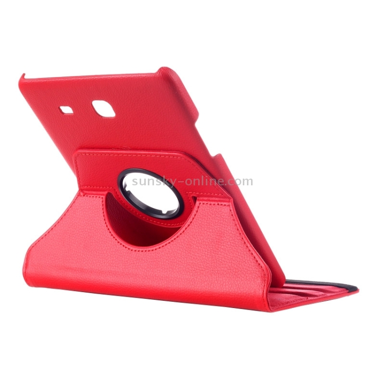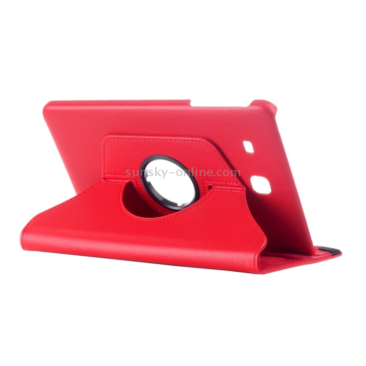 Funda de Cuero Litchi Texture para Galaxy Tab E 9.6 con Rotación 360 y Soporte Multifuncional (Rojo)