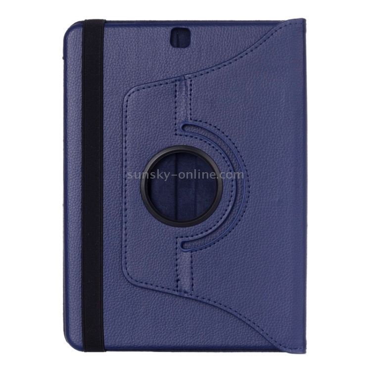 Funda de Cuero Litchi Texture Galaxy Tab S2 9.7 Soporte Rotación 360 (Azul Oscuro)