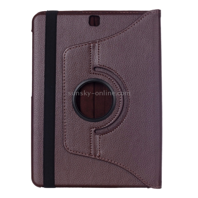 Funda de Cuero Litchi Texture para Galaxy Tab S2 9.7 con Rotación 360 y Soporte Multifuncional (Café)