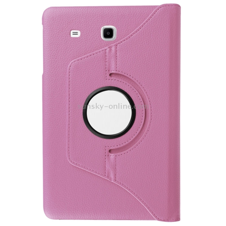 Funda De Cuero Litchi Texture Para Galaxy Tab E 9.6 T560 T561 Con Tapa Y Soporte Rotación 360 (Rosa)