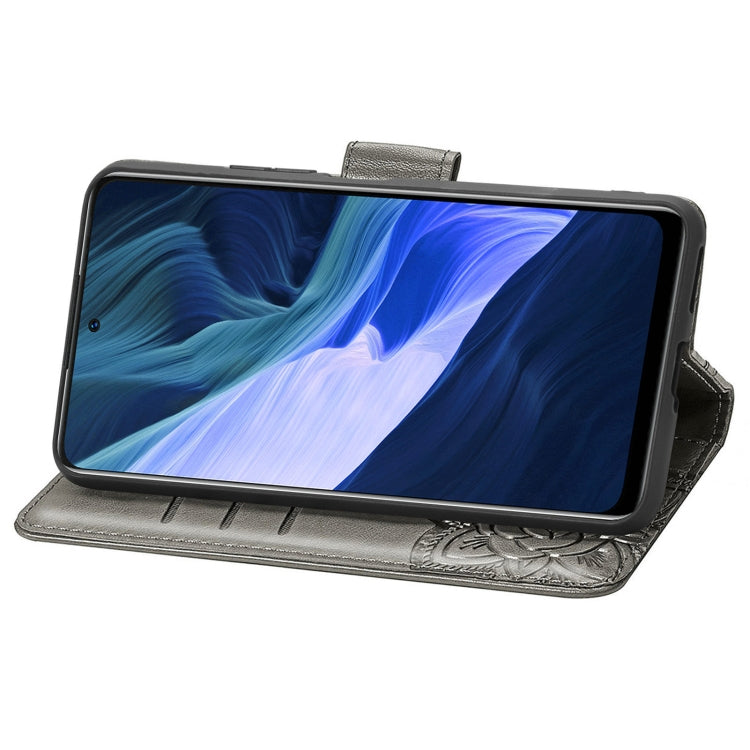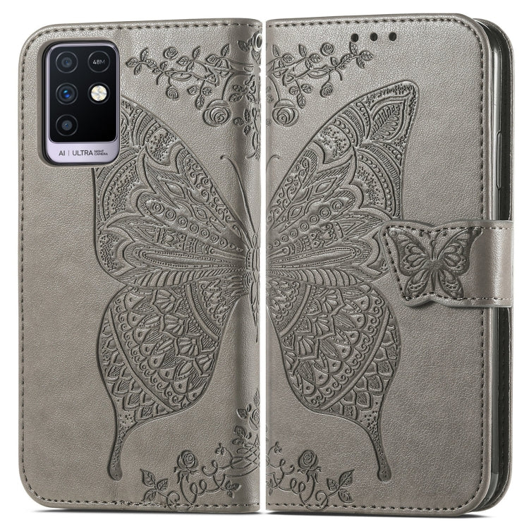 Funda Cuero Horizontal Mariposa Amor Flores con Soporte, Ranuras y Cordón para Infinix Nota 10 (Gris)