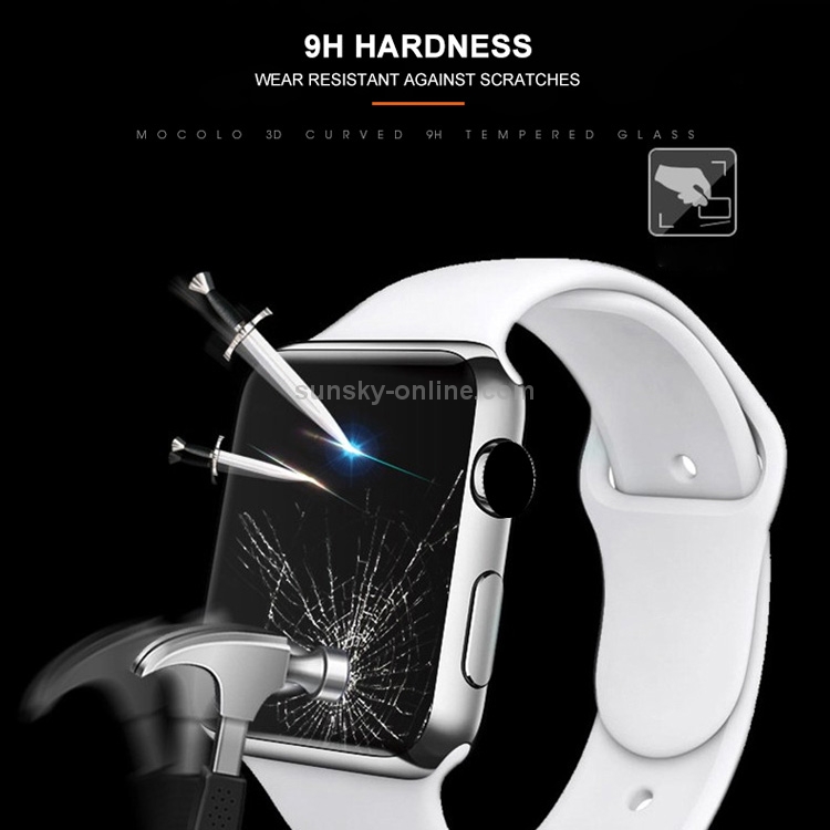 Película de Vidrio Templado Mocolo 0.33mm 9H 3D con Pegamento Completo Borde Redondo para Apple Watch Series 4 44mm (Negro)