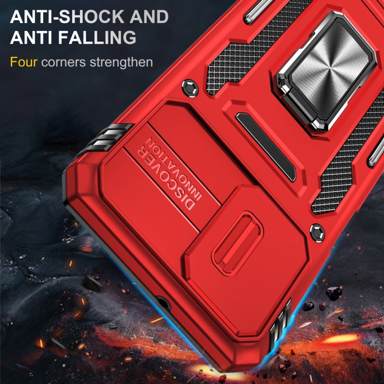 La Funda Motorola Moto G73 Armor PC + TPU con Protector de Cámara en color Rojo está diseñada específicamente para el modelo Moto G73, ofreciendo una protección integral y funcionalidad avanzada. Fabricada con materiales de alta resistencia como TPU y PC, esta Funda proporciona durabilidad y absorción de impactos para proteger el dispositivo contra caídas y golpes. Su diseño incluye una Cubierta deslizable para la Cámara que evita rayaduras, además de protección reforzada en las esquinas mediante Bolsas de aire. Incorpora un Soporte magnético para autoMóvil que garantiza estabilidad durante el uso en vehículos y un anillo metálico giratorio 360 grados que permite sostener el Teléfono de manera segura tanto en posición horizontal como vertical. El acabado con proceso de microcepillado asegura un agarre cómodo y seguro para el usuario.
