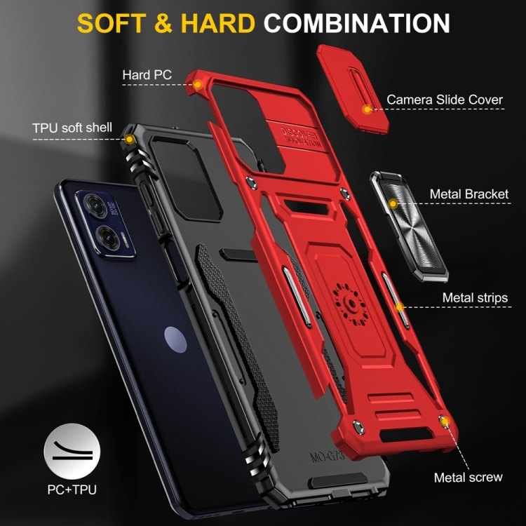 - 1x Funda Motorola Moto G73 Armor PC + TPU con Protector Cámara (Rojo)