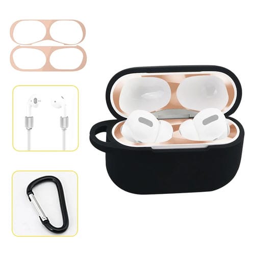 Caja Protectora Silicona Para Airpods Pro Almacenamiento Gancho Cuerda (Negro)