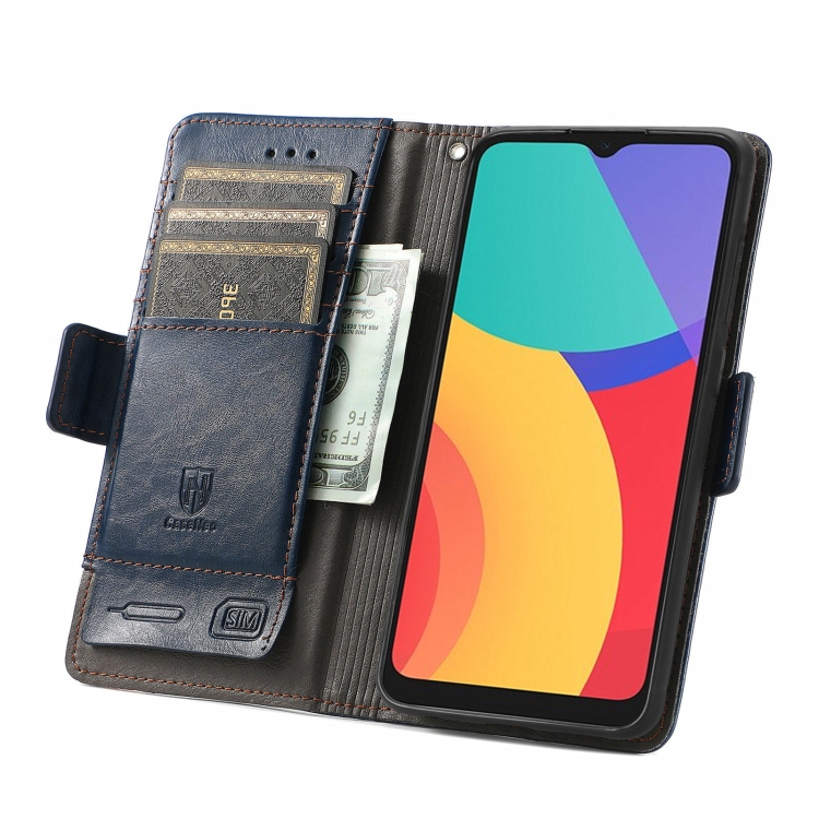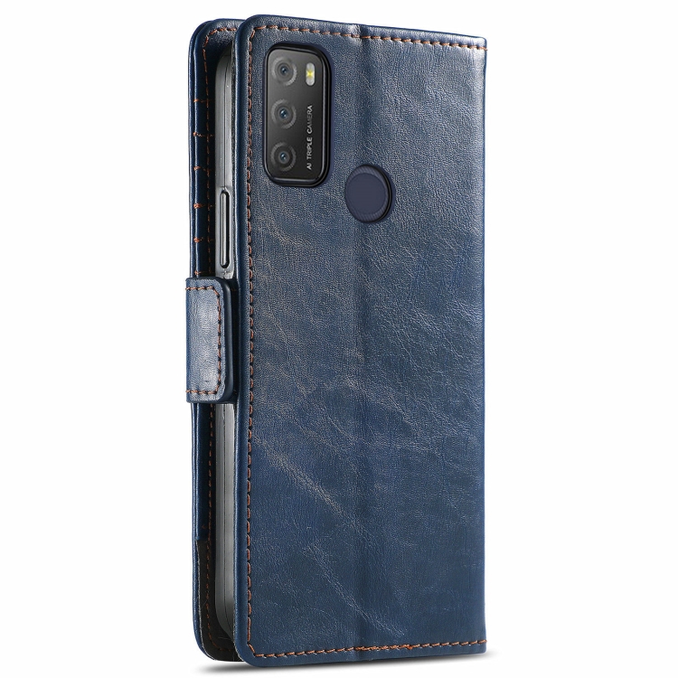 Funda de Cuero Caseno para Alcatel 1S (2021) Flip Horizontal con Soporte y Billetera (Azul)