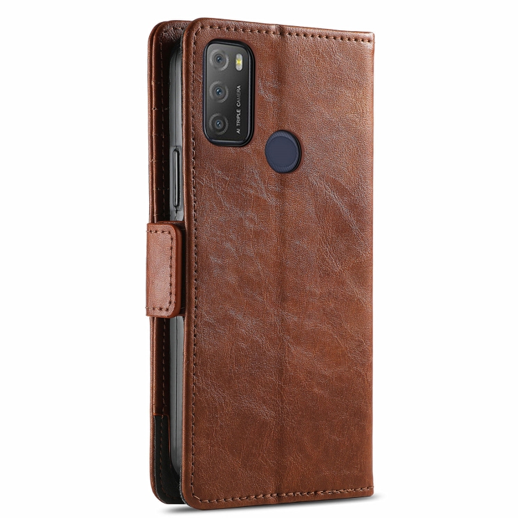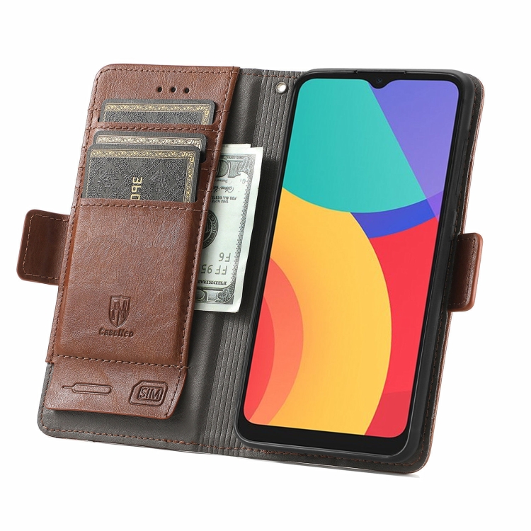 Funda de Cuero Caseno para Alcatel 1S (2021) con Soporte, Billetera y Tragamonedas (Marrón)