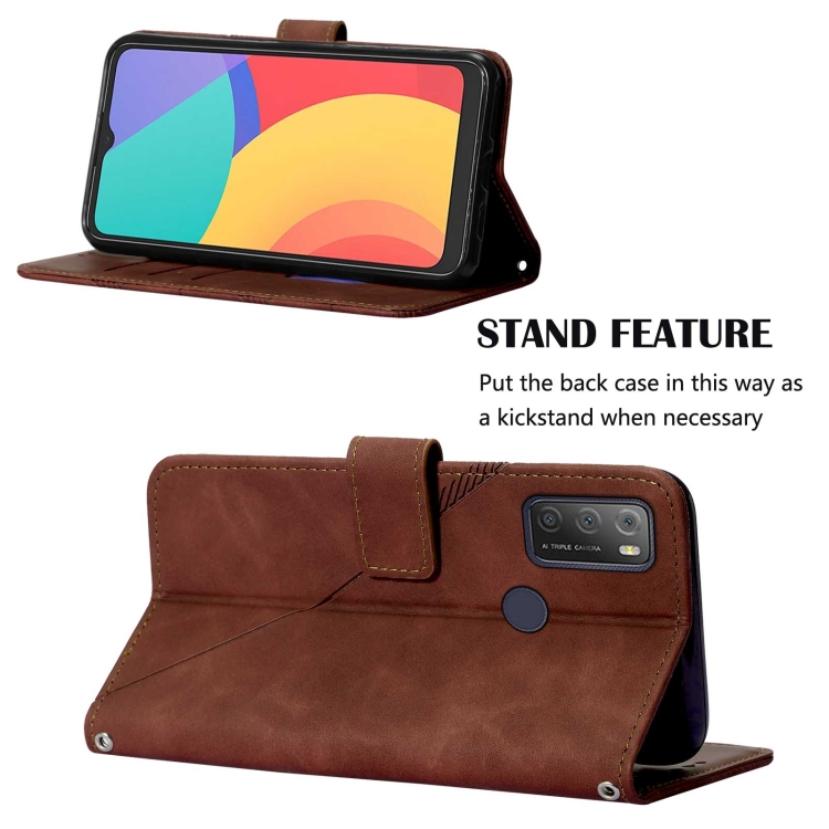 Funda para Alcatel 1S / 3L (2021) Cross Cross 3D Caja de Cuero con Goma 3D (Marrón)