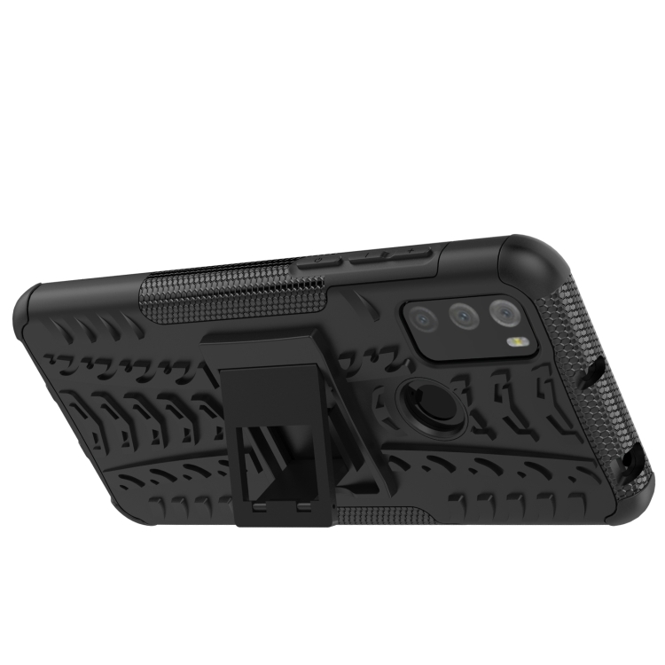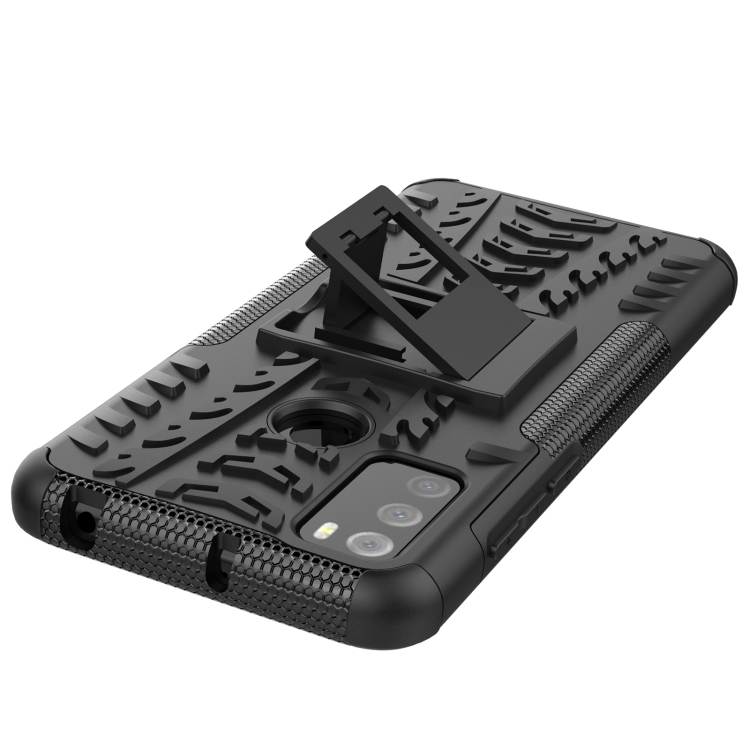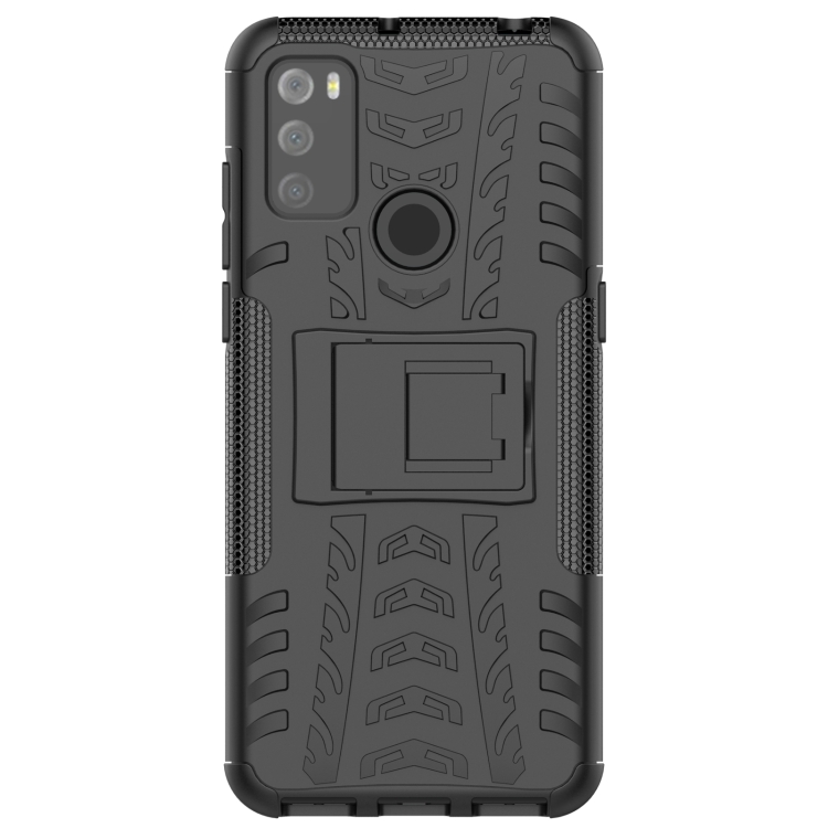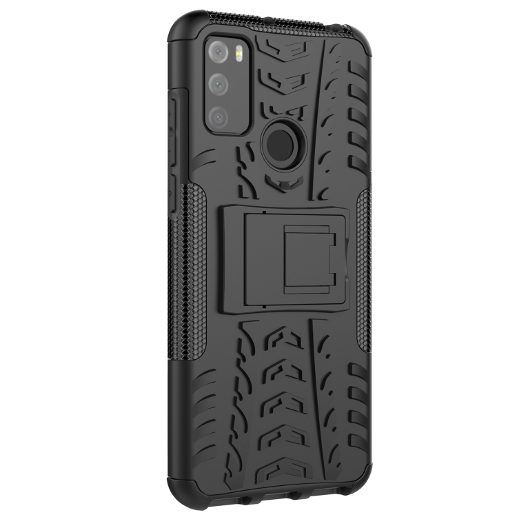 Funda Protectora TPU + PC con Soporte para Alcatel 3L (2021) Textura Neumáticos (Negro)