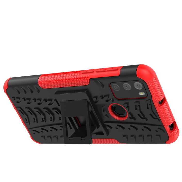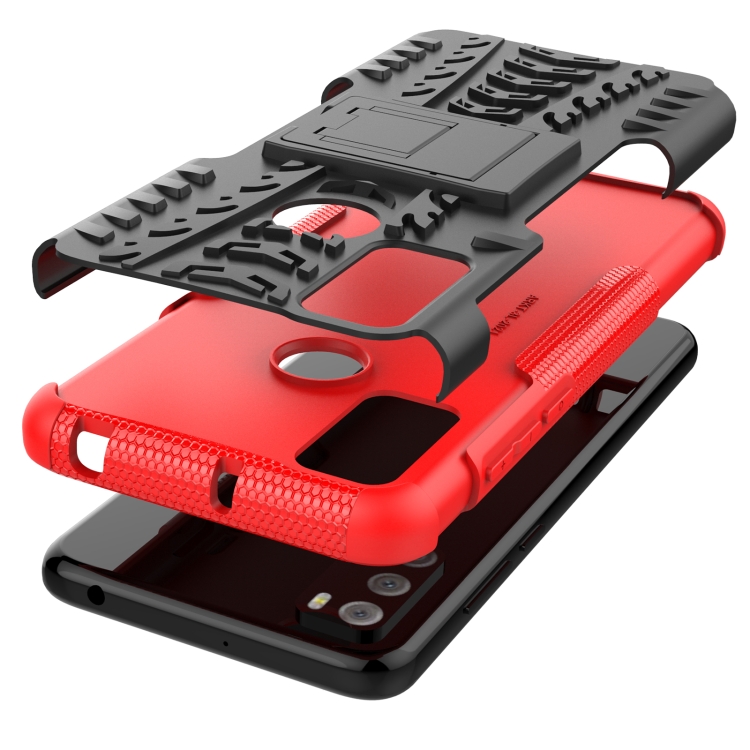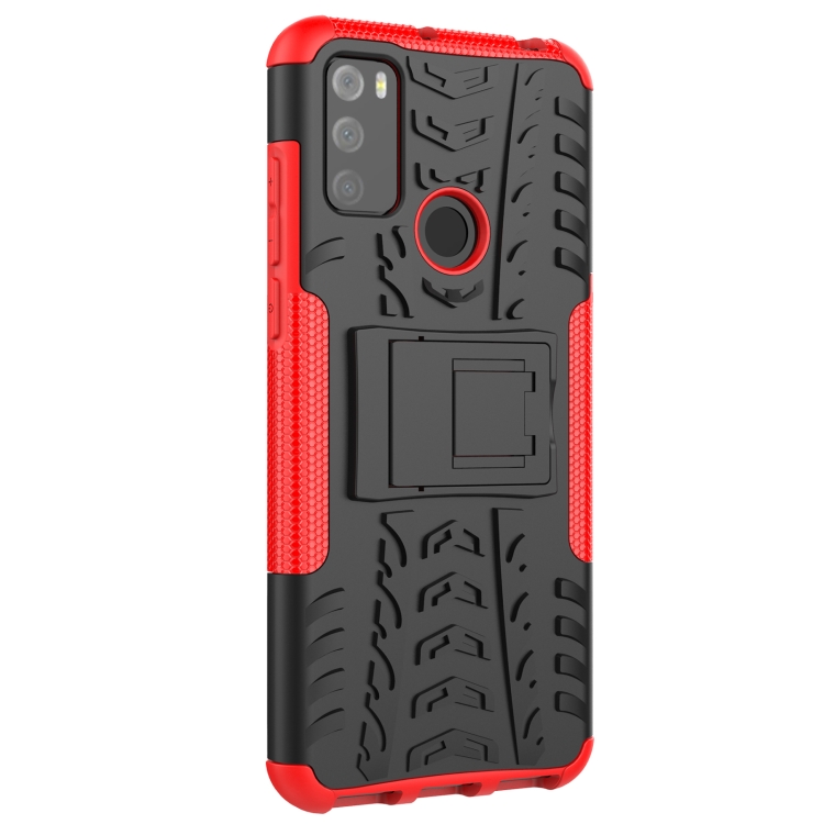 Funda Protectora TPU + PC con Soporte para Alcatel 3L (2021) Textura Neumáticos (Rojo)