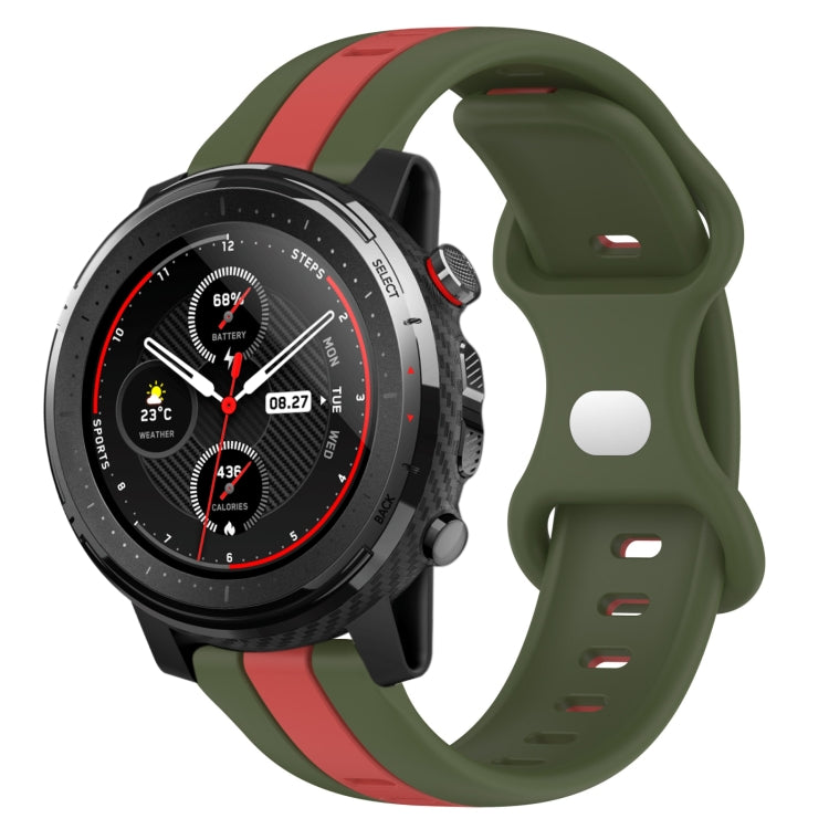 Correa de Reloj Amazfit 3 22mm Silicona Dos Colores con Hebilla de Mariposa (Rojo + Verde Militar)