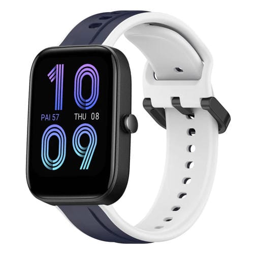 Correa de Reloj para Amazfit Bip 3 Silicona Dos Colores Bucle Convexo 20mm (Azul Medianoche + Blanco)