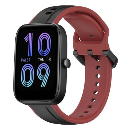 Correa de Silicona para Amazfit Bip 3 con Bucle Convexo de 20mm (Negro + Rojo)