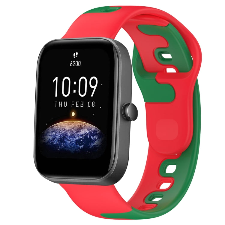 Correa de Silicona para Amazfit Bip3 20mm Doble Color (Rojo + Verde)