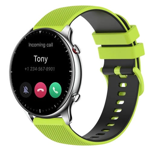 Correa de Reloj para Amazfit GTR 2 22mm Silicona Dos Colores a Cuadros (Verde Lima + Negro)