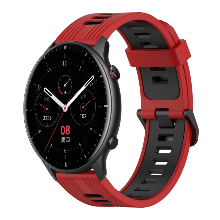 Correa de Silicona para Amazfit GTR 2 22mm Patrón Vertical Dos Colores (Rojo + Negro)