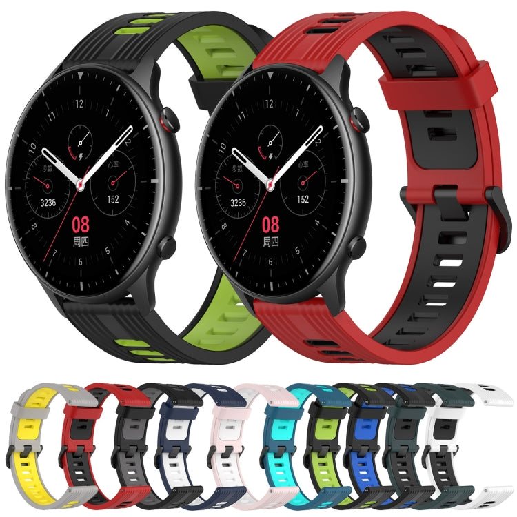 Correa de Reloj silicona Amazfit GTR 2 22mm patrón vertical dos colores (Verde Oliva + Negro)