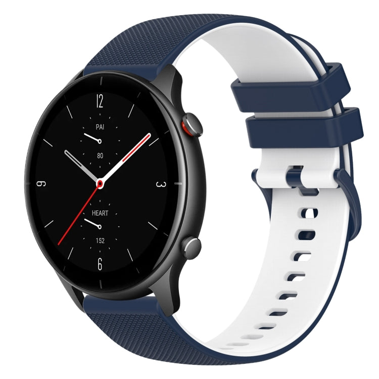 Correa de Reloj Silicona para Amazfit GTR 2E 22mm Dos Colores a Cuadros (Azul Oscuro + Blanco)