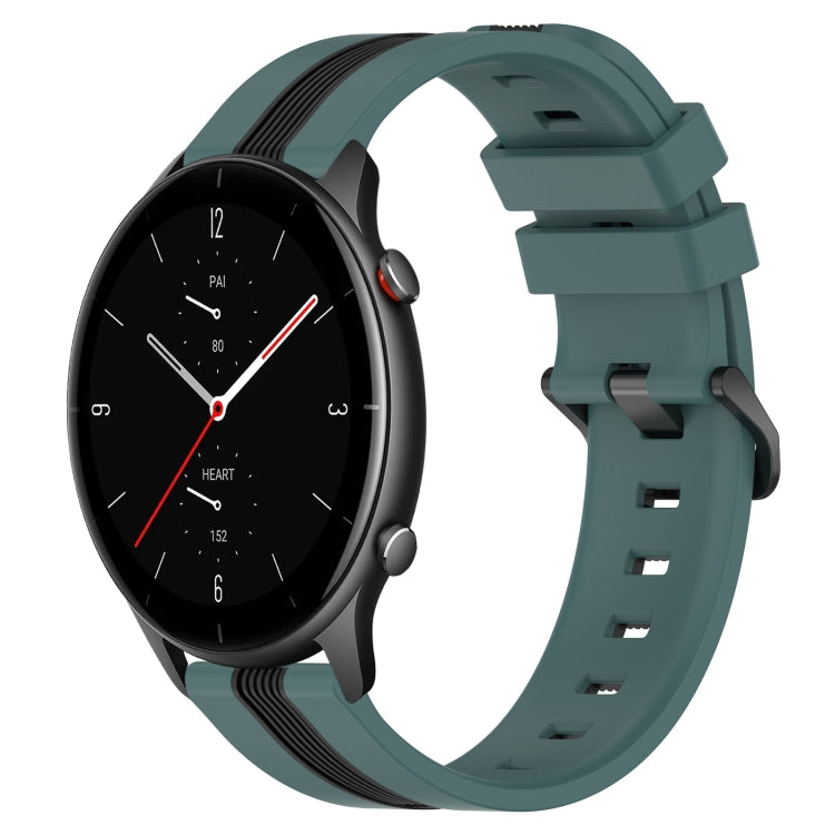 Correa de Silicona para Amazfit GTR 2E 22mm Dos Colores Vertical (Verde + Negro)