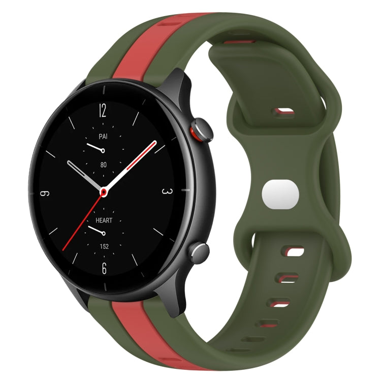 Correa de Reloj para Amazfit GTR 2E 22mm Silicona Hebilla de Mariposa (Rojo + Verde Militar)