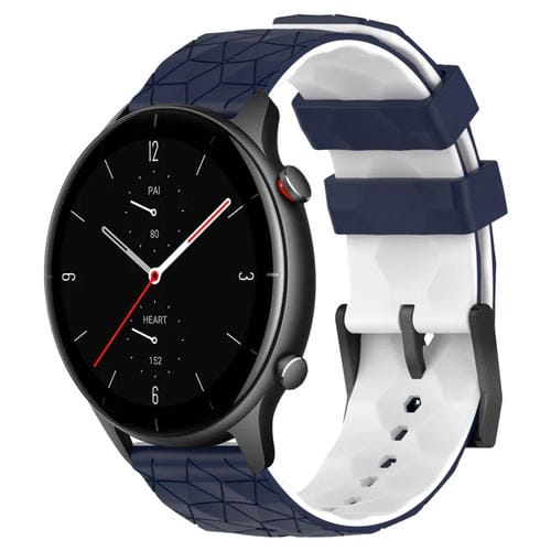 Banda de Reloj para Amazfit GTR 2E 22mm Silicona Textura de Fútbol Dos Colores (Azul Medianoche + Blanco)