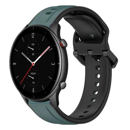 Correa de Silicona para Amazfit GTR 2E 22mm Dos Colores con Bucle Convexo (Verde Oliva + Negro)
