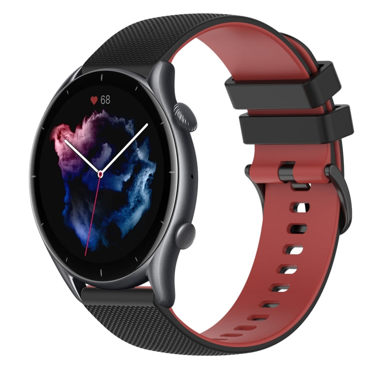 Correa de Reloj para Amazfit GTR 3 22mm Silicona Dos Colores a Cuadros (Negro + Rojo)