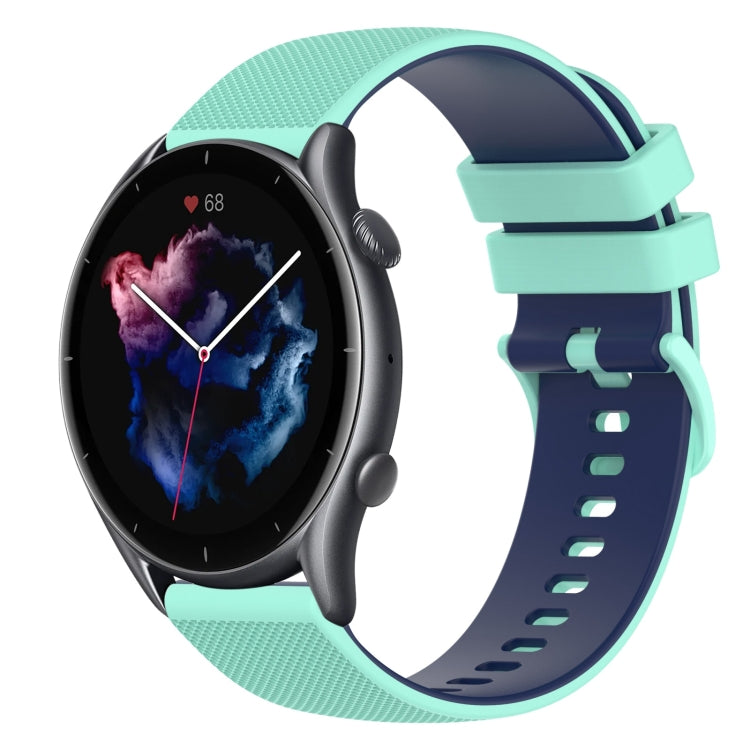 Correa de Reloj para Amazfit GTR 3 22mm Silicona Dos Colores a Cuadros (Verde Azulado + Azul)