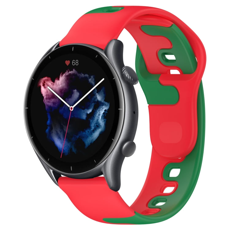 Correa de Silicona para Amazfit GTR 3 22mm Doble Color (Rojo + Verde)