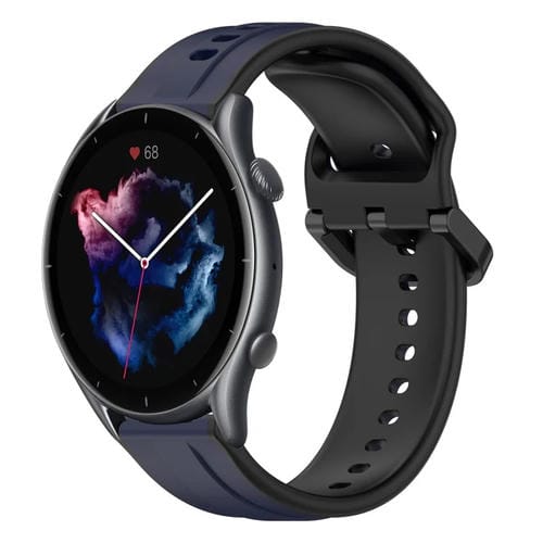 Correa de Silicona para Amazfit GTR 3 de 22mm con Bucle Convexo Dos Colores (Azul Medianoche + Negro)