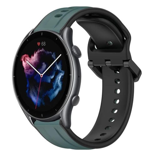 Correa de Silicona para Amazfit GTR 3 22mm con Bucle Convexo (Verde Oliva + Negro)