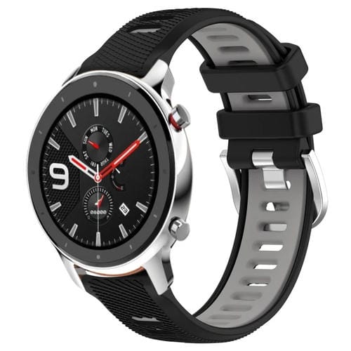 Correa de Reloj Amazfit GTR 4 Pro 22mm Silicona Textura Cruzada con Hebilla de Acero (Negro + Gris)