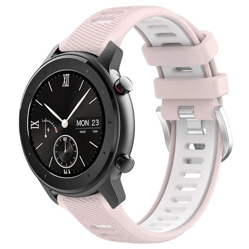 Correa de Reloj para Amazfit GTR 42mm 22mm Textura Cruzada Silicona Dos Colores (Rosa + Blanco)