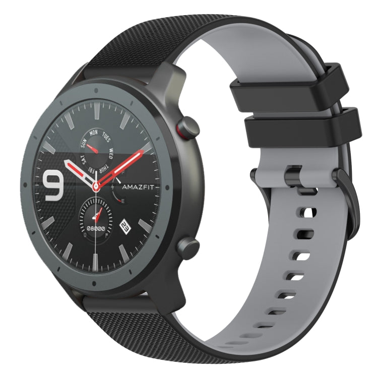 Correa de Reloj para Amazfit GTR 47mm 22mm Silicona Dos Colores a Cuadros (Negro + Gris)