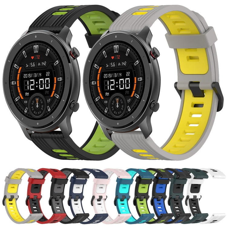 Correa de Silicona para Amazfit GTR 47mm 22mm Patrón Vertical Dos Colores (Blanco + Negro)