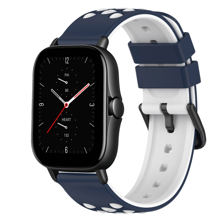 Correa de Reloj para Amazfit GTS 2 20mm Silicona Dos Colores (Azul Medianoche + Blanco)