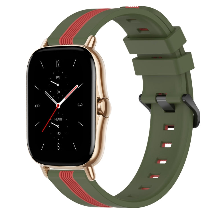 Correa de Reloj Amazfit GTS 2 20mm Silicona Dos Colores Vertical (Verde Militar + Rojo)