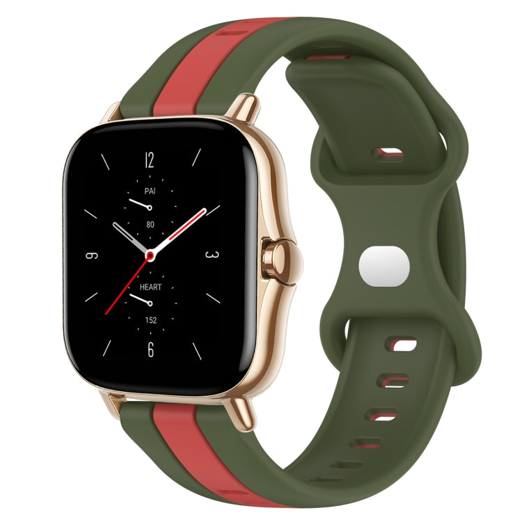 Correa de Silicona para Amazfit GTS 2 20mm con Hebilla de Mariposa (Rojo + Verde Militar)