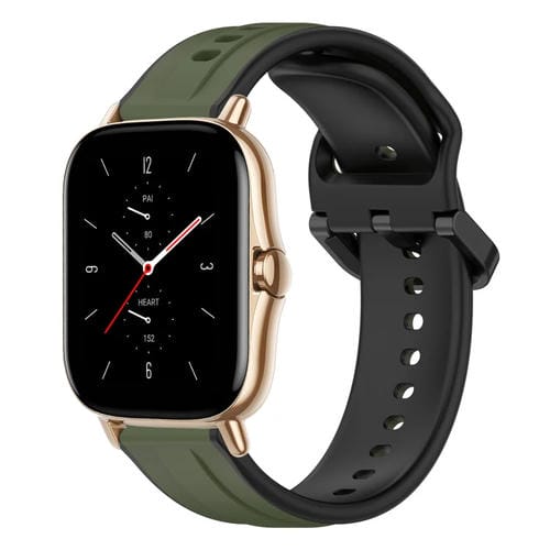 Correa de Silicona para Amazfit GTS 2 20mm con Bucle Convexo (Verde Oscuro + Negro)