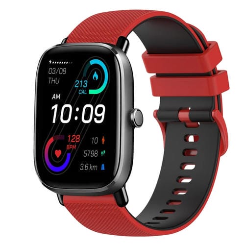 Correa de Reloj para Amazfit GTS 2 Mini 20mm Silicona Dos Colores a Cuadros (Rojo + Negro)
