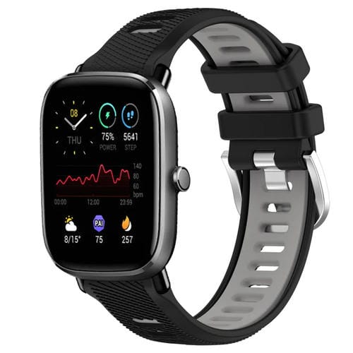 Correa para Amazfit GTS 2 Mini 22mm silicona textura cruzada con hebilla acero (Negro + Gris)