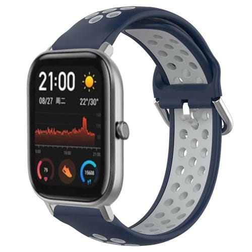 Correa de Reloj para Amazfit GTS 20mm Silicona Deportiva Transpirable Perforada (Azul Medianoche + Gris)