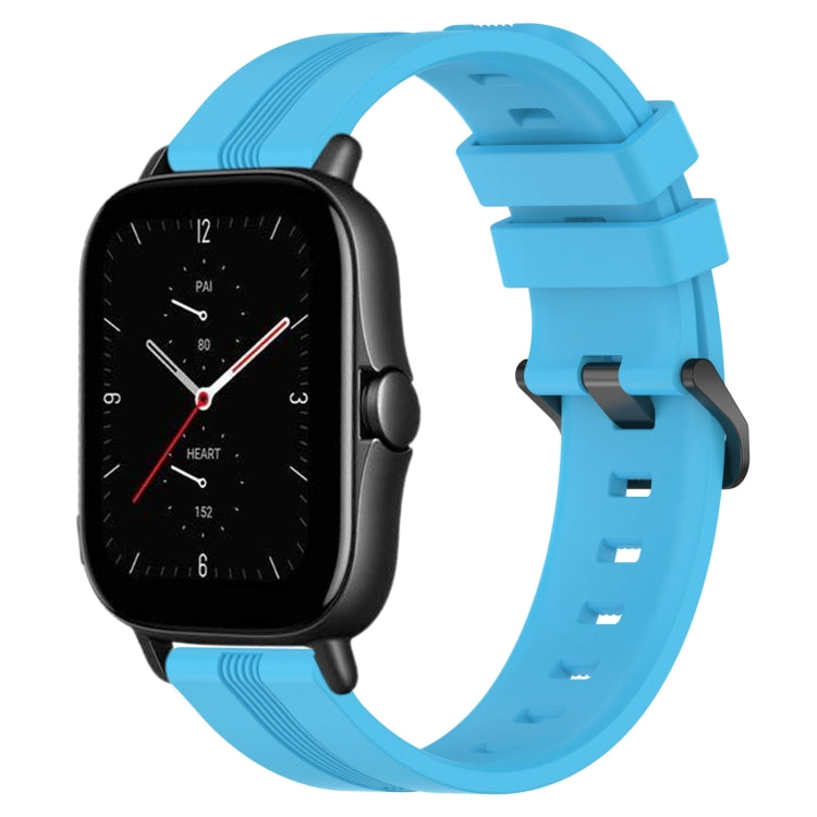 Banda de Reloj de Silicona para Amazfit GTS 2E 20mm con Rayas Cóncavas (Azul Cielo)
