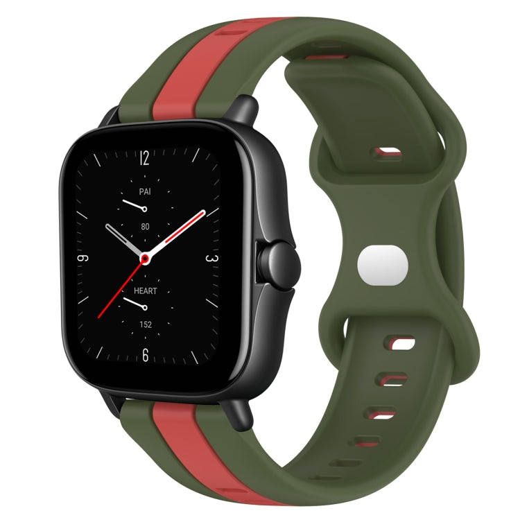Correa de Silicona para Amazfit GTS 2E 20mm con Hebilla de Mariposa (Rojo + Verde Militar)