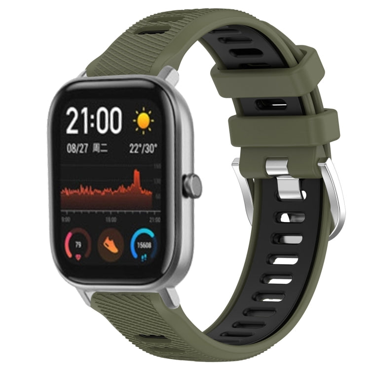 Correa de Reloj para Amazfit GTS 22mm Silicona Dos Colores con Hebilla de Acero (Verde Militar + Negro)